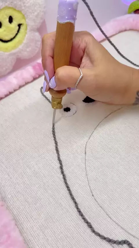 Quem nunca né? 👁️👄👁️ . ✨ Quer aprender a bordar com a técnica Punch needle? Eu te ensino! Me chama na dm ou vai no link da minha bio! 🩷 . . . #punchneedle #bordado #hobby #artesanato #pontorusso