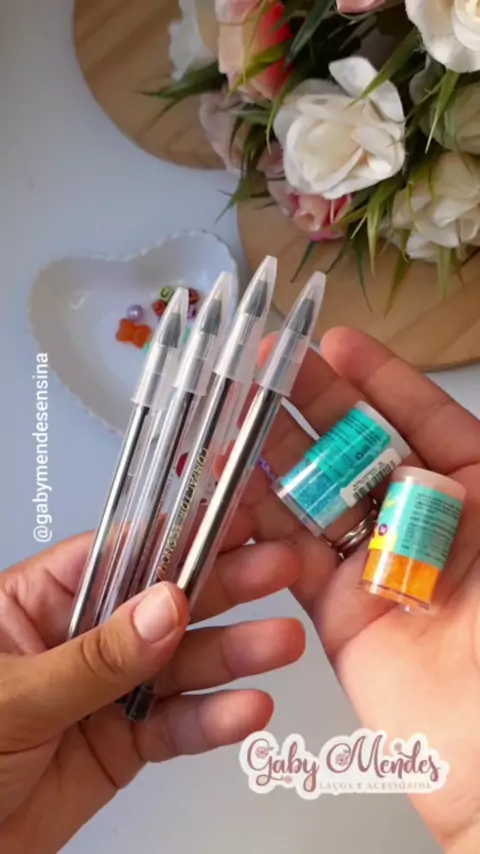 Vem personalizar canetas comigo!! 🖊🖋 . Materiais ✂🧵 *Caneta *Glitter *Cola de silicone fria *Pompom de tule de malha *Miçangas sortidas *Fio de seda 1 mm . . #canetapersonalizada #dicas #ideiasincriveis #desafiojogo #KwaiFamilia