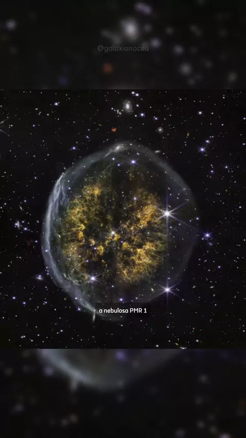 Uma faixa escura e bem definida entre duas nuvens cósmicas dá à PMR 1 uma aparência surpreendentemente semelhante a um cérebro. Observada pela NIRCam do Telescópio Espacial James Webb, a imagem revela múltiplas fases das explosões de uma estrela moribunda reunidas em um único retrato. A bolha externa esbranquiçada, com formato que lembra um crânio, é resultado de uma ejeção inicial composta principalmente de hidrogênio.