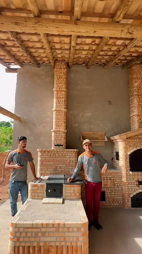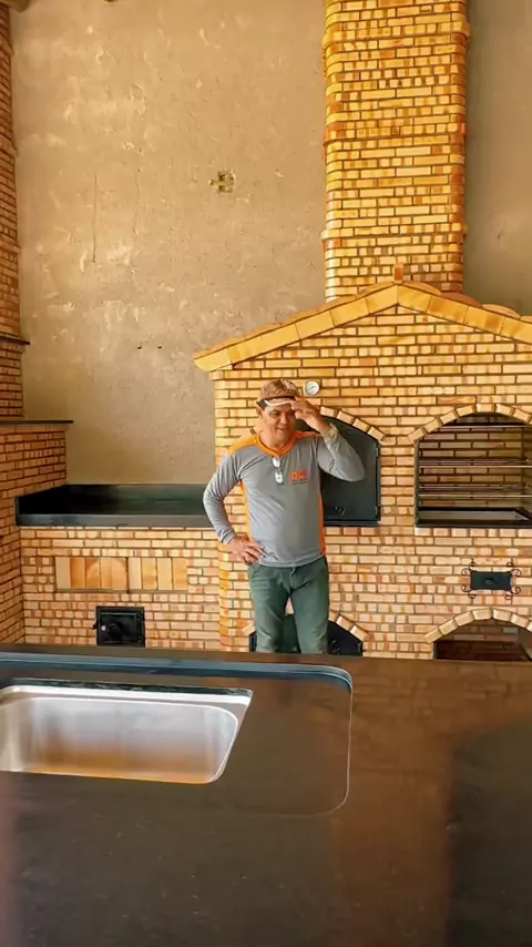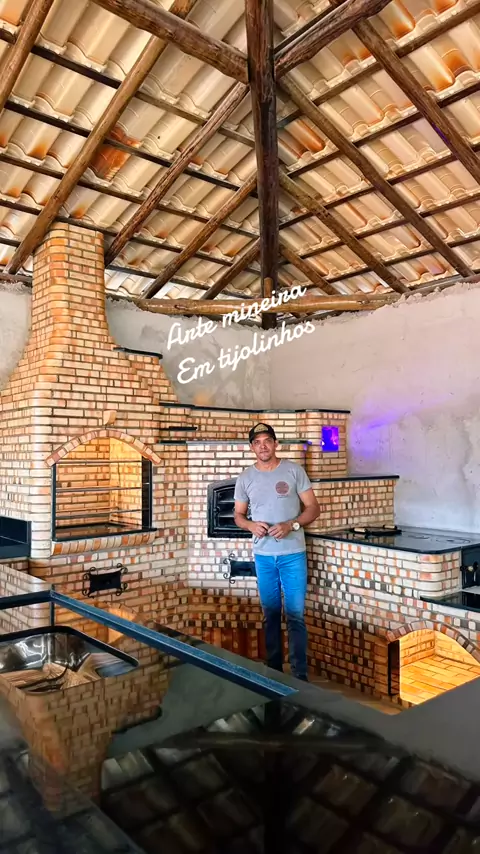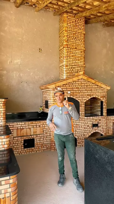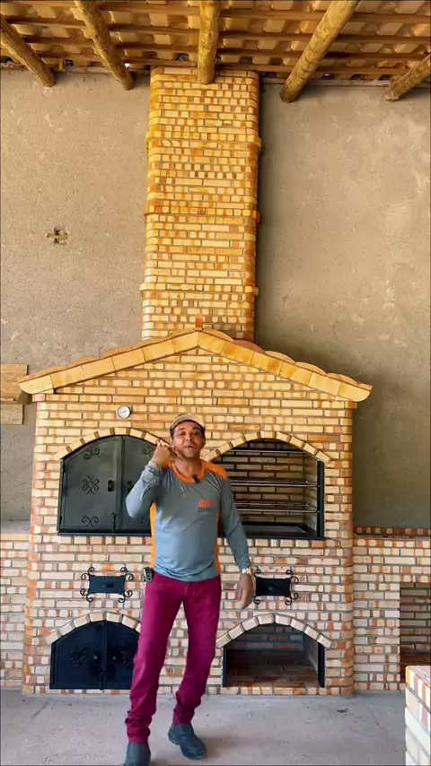 Área gourmet muito carregada de tijolinhos ?f forno ,fogão ,churrasqueira e defumador #fornoalenha🔥 #churrasqueira #defumador #areagourmet