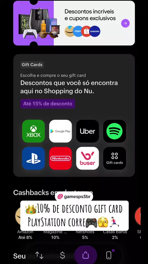 👑PlayStation Gift Cards✅ 🫣DESCONTÃO {10%}core🏃🏻‍♂️🏃🏻‍♂️core vai acab@r #giftcards #Nubank #descontos #games #cashback