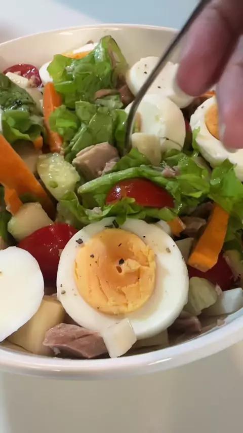 Receita fácil e rápida de salada de atum! Muito protéica e vai dar energia sem pesar para curtir o carnaval… Ingredientes Atum (em água) Alface Tomate Palmito Pepino Ceboura Ovo cozido Sal, pimenta-do-reino e azeite. #atum #saladasaudavel #saladas #receita #receitafit