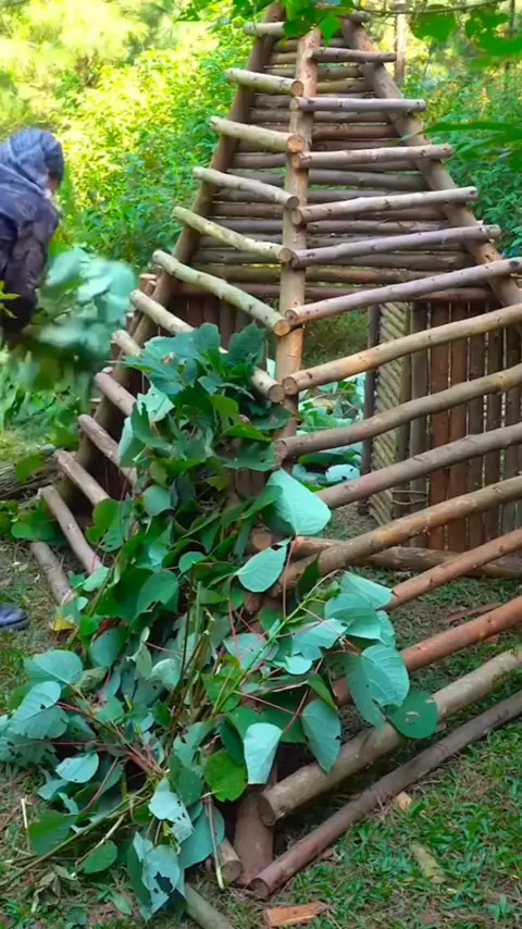Abrigo primitivo na floresta. #EstrelaDeFamília #CrescerNaFamília #construção #floresta #sobrevivencia