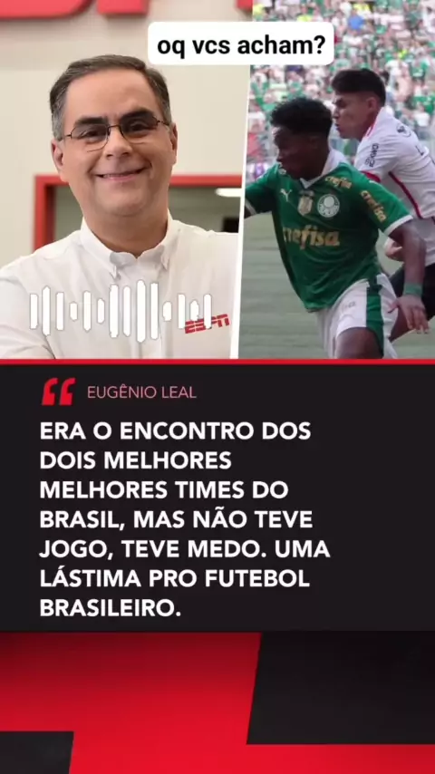 "FOI HORROROSO, TODO MUNDO COM MEDO DE PERDER" 👀😳 *O EugĂȘnio Leal nĂŁo aliviou a postura de Palmeiras e Flamengo no clĂĄssico de ontem...* _Concorda com ele, fĂŁ de esporte?_ đŸ€” SIM, os times deixaram muito a desejar 👍 NÃO, foi normal dado o equilĂ­brio entre os times 👎