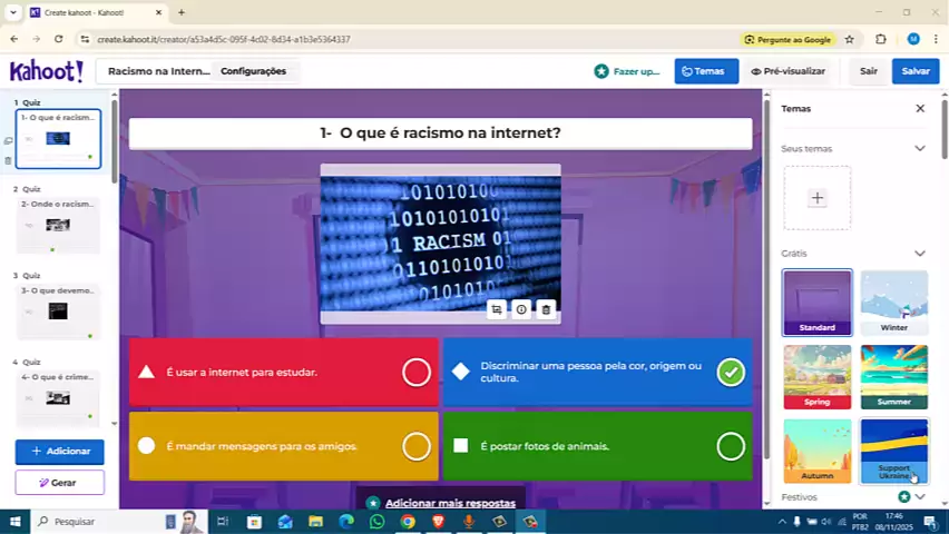 Aprendendo a utilizar o Kahoot, uma plataforma de quiz online: https://youtu.be/lA2PN-oEqBQ Aprendendo a mexer no Kahoot, quiz online, sobre o racismo na Internet: https://create.kahoot.it/share/racismo-na-internet/a53a4d5c-095f-4c02-8d34-a1b3e5364337 Professor Maycon Júlio Autor da Vídeo Aula: Maycon Júlio Faria Fontes #youtube​ #youtuber​ #youtuberbrasil​ #youtubers​ #mayconjulio​