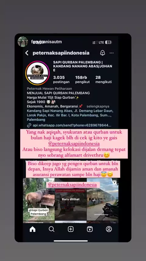 sapi qurban Palembang, kandang Nanang Abas demang, jl demang lebar daun, depan alfamart drrive thru demang. Assalamu'alaikum Bismillahirrahmanirrahim bpk/ibu kami menyediakan sapi kurban, berbagai jenis sapi tentunya : Sapi simental, limousin, brahma, bali, PO, lokal, brangus dll Alamat kandang : 📌 Jl demang lebar daun, Depan Alfamart Drive Thru Demang (Spanduk NANANG ABAS/JOHAN E) #sapiqurbanpalembang #sapiqurbanpalembang2025 #sapikurbanpalembang #kambingakikahpalembang #palembangsumsel...