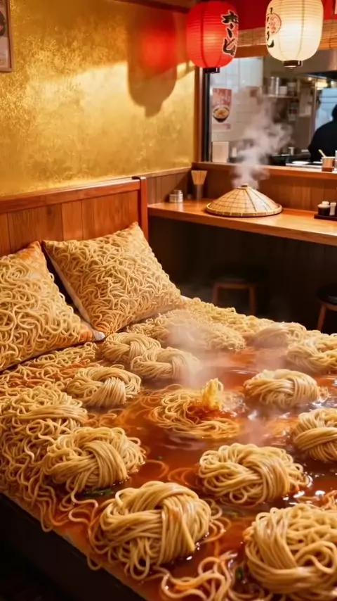 🍜🌶️ Qual dessas camas de ramen você escolheria? 🍜🌶️ Which of these ramen beds would you choose? #AIart #asmr #asmrvideo #satisfyingvideo #asmrsounds