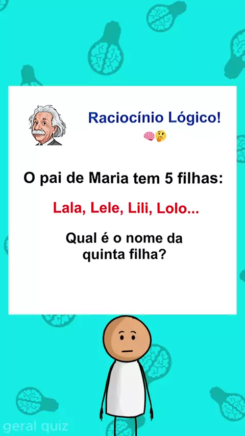 Raciocínio lógico - O pai de Maria tem 5 filhas: Lala, Lele, Lili, Lolo e? #quiz #raciocinio #lógica #divertido #kwai
