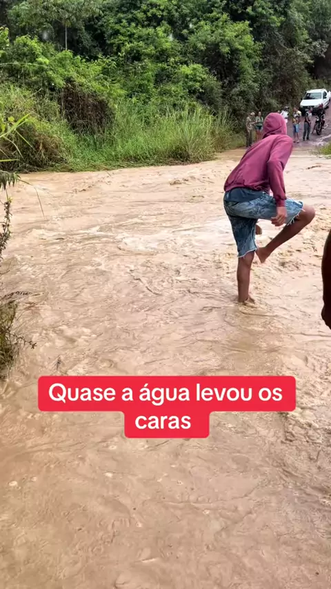 Água quase levou os caras na cheia do Rio#agua #enchente #video #lama
