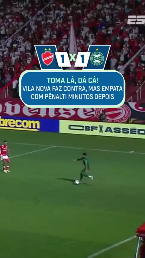 TOMA LÁ, DÁ CÁ! Tiago Pagnussat fez contra e abriu o placar para o Coritiba, mas o Vila Nova deixou tudo igual apenas 10 minutos depois! 👉 Assista à partida entre Vila Nova x Coritiba AO VIVO no #DisneyPlus. #SérieBNaESPN #VilaNova #Coritiba #DeFériasCaribeVIP