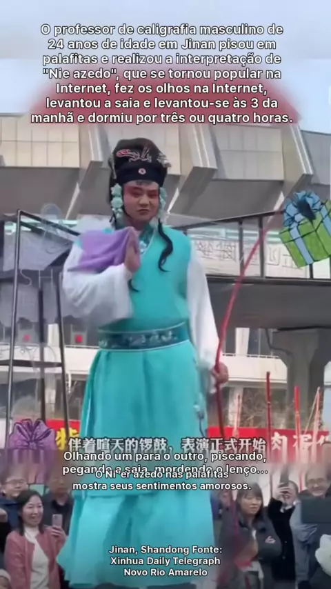 O professor de caligrafia masculino de 24 anos em Jinan tornou-se popular na Internet ao andar em palafitas.