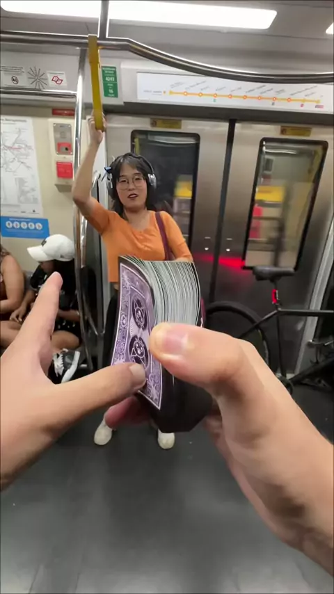 Acho que ela gostou do baralho#baralho#reaction#cardistry#metro