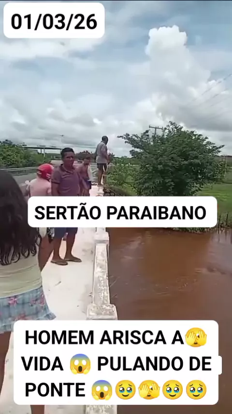 Homem arisca a vida pulando de ponte no sertão paraibano #enchentes #noticiaemgeral #BombeiroCivil #ponte #rio