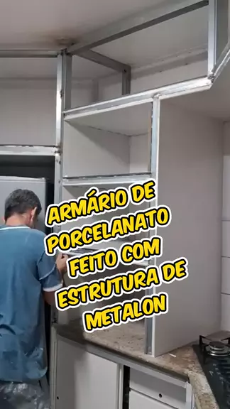 Armário de Porcelanato feito com estrutura de ferro #armário #porcelanato #ferro