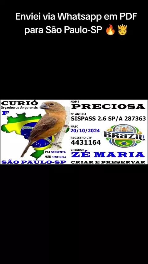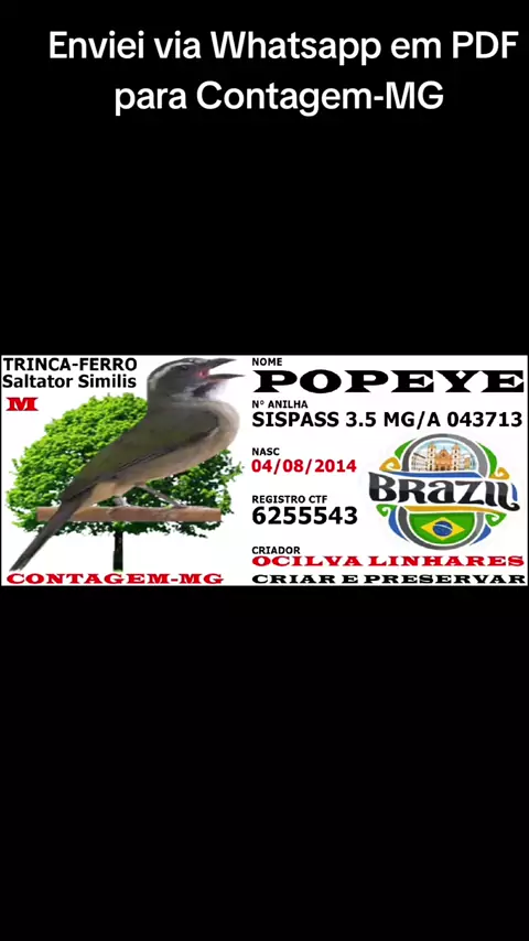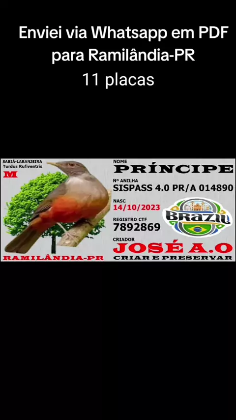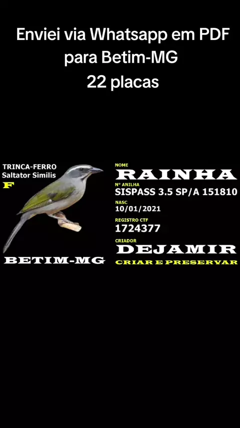 Olá sou Gilberto O Rei Das Placas faço placas de identificação personalizada para pássaros 🔥🤴