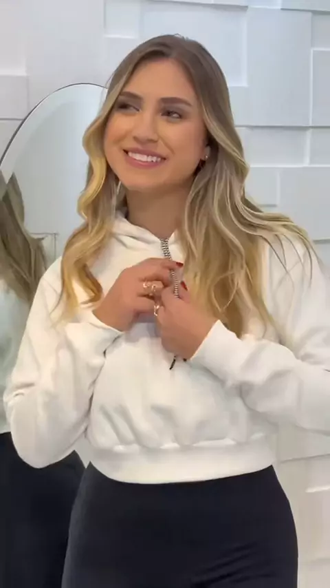 Cropped de Moleton Blusa Curta Moda Inverno 2024 Blogueirinha #blusadefrio #Cropped #croppedmoletom #moletom #kwaishop