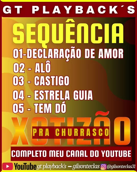 CANAL DO YOUTUBE - GT PLAYBACK'S / GILSON TECLAS https://youtube.com/@gilsonteclasplay?si=8c0BrCNIeMgp6e0l