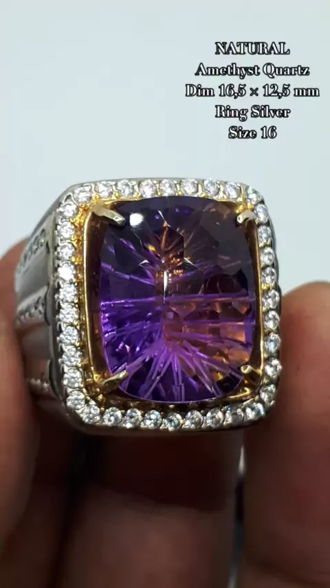 Natural Amethyst Quartz Dim 16,5 × 12,5 mm Ring Silver size 18 Berminat, Lanjut inbox/Wa WhatsApp +6281398003077 #viral #trending #gemstone #jewelry #amethyst