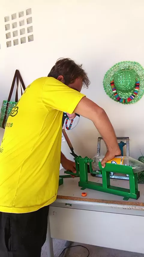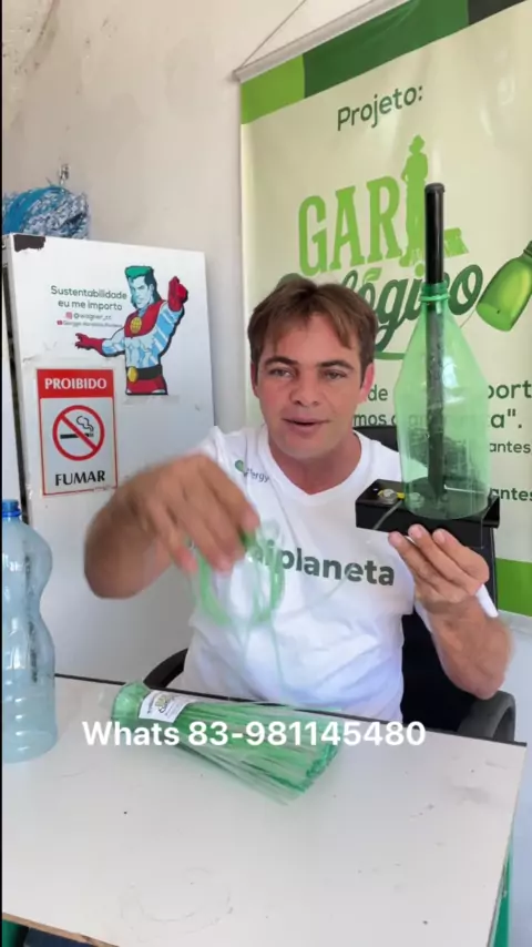 Ferramenta para reaproveitar garrafas Pet ♻️ eu uso os fios para Fabricação de vassouras ecológicas 💚 #kwai #saudeemocional #gariecologico #DYI #viral Maiores informações via WhatsApp 83-981145480