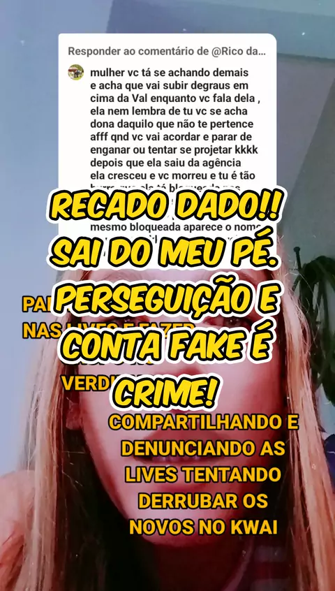 Responder a @Rico da roça 👑(O150001719085604) RECADO DADO!! SAI DO MEU PÉ. PERSEGUIÇÃO E CONTA FAKE É CRIME! #Ingratidão #Saídomeupé #Perseguiçãoécrime #QuemnãoCriaCopia #ContaFakenoBrasiléCrime