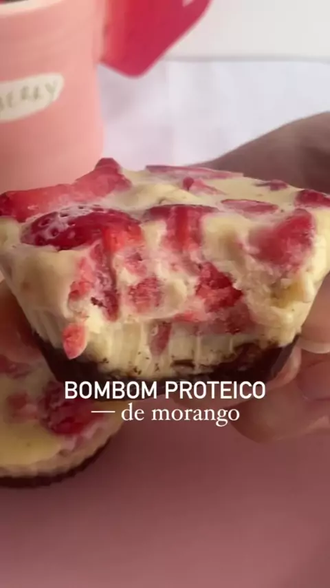Ingredientes: - 1 dose de whey protein - 1 colher de sopa cheia de leite em pó - 2 quadradinhos de chocolate 60% (20g) da sua preferência; - 5-6 morangos; #AquiGeralBrilha #Bombom