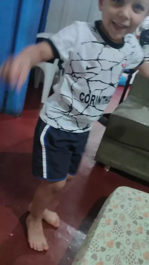 a felicidade da criança por ganhar uma camiseta!!