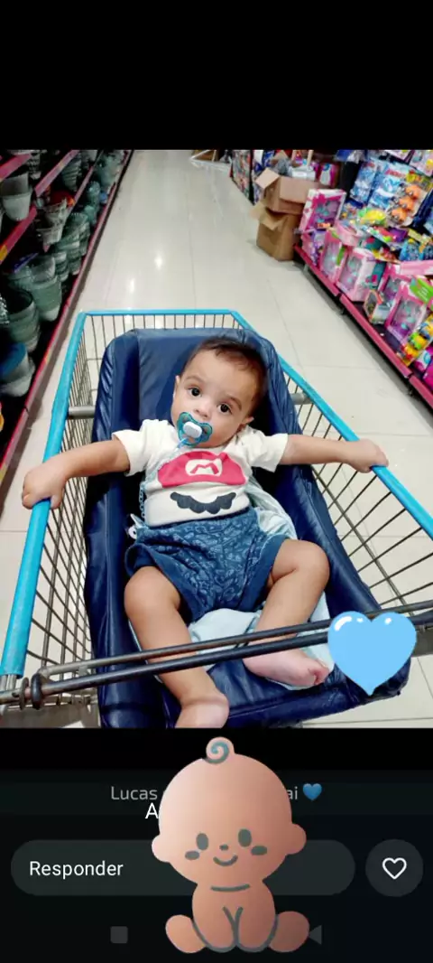 #lindo primeira vez no carrinho da loja, se segurando com medo de cair, 😊