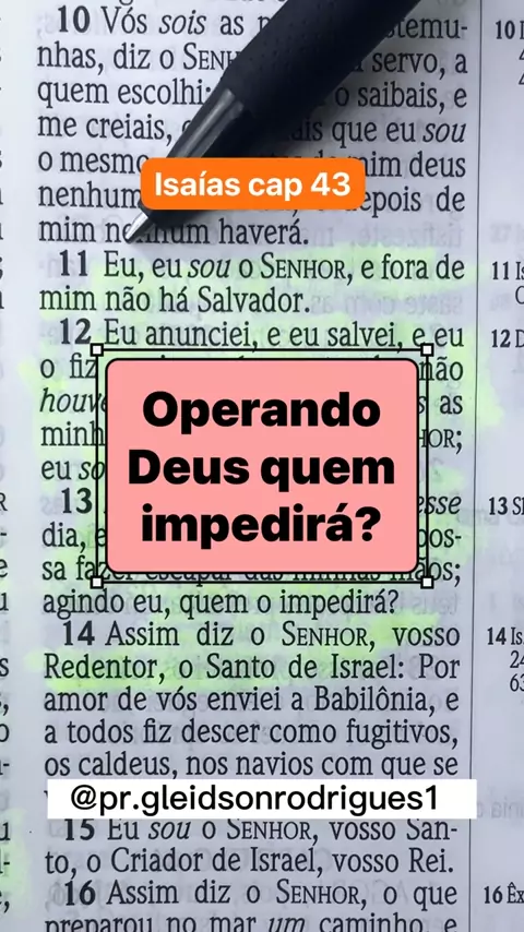 Isaías 43: 11. Eu, eu sou o SENHOR, e fora de mim não há Salvador. 12. Eu anunciei, e eu salvei, e eu o fiz ouvir, e deus estranho não houve entre vós, pois vós sois as minhas testemunhas, diz o SENHOR; eu sou Deus. 13. Ainda antes que houvesse dia, eu sou; e ninguém há que possa fazer escapar das minhas mãos; agindo eu, quem o impedirá? #DEUS #biblia #motivacional #video #viral