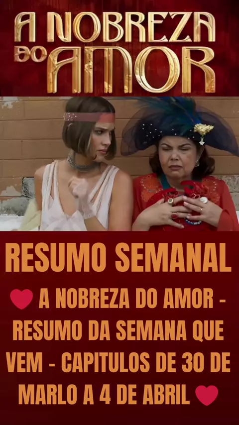 A NOBREZA DO AMOR - RESUMO SEMANAL - CAPÍTULOS DE 30 DE MARÇO A 4 DE ABRIL