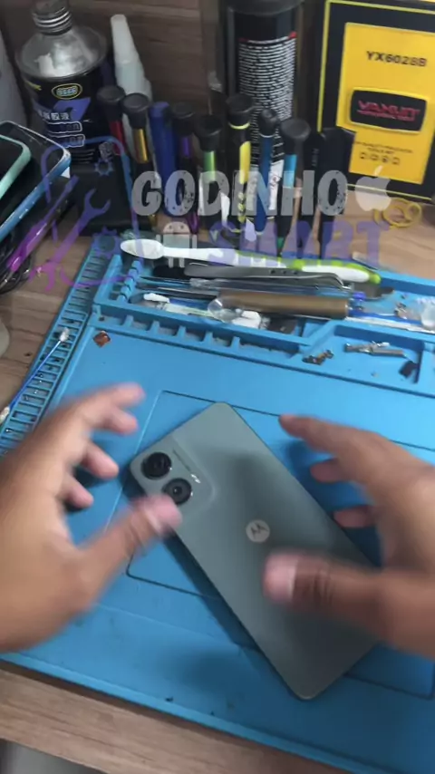 Cliente chegou desesperado: Moto G35 5G não carregava mais que 74% depois de pegar chuva 💊📱 Abri o aparelho, fiz limpeza completa, desoxidação e até raspagem na subplaca