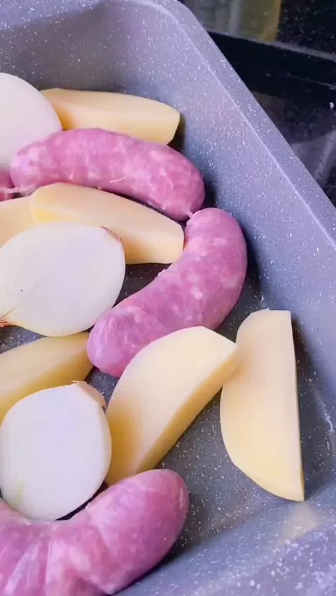 Saindo uma linguicinha assada com batatas para o almoço de hoje!😍 Deixo uns 20 minutos com o papel alumínio para a batata não ressecar e depois volto ao forno para assar até dourar. Uma delícia!!! O que está saindo de bom por aí?♥️ #KwaiConquistar50k #sejacriador #Halloween50k #kwaioriginal #comidacaseira
