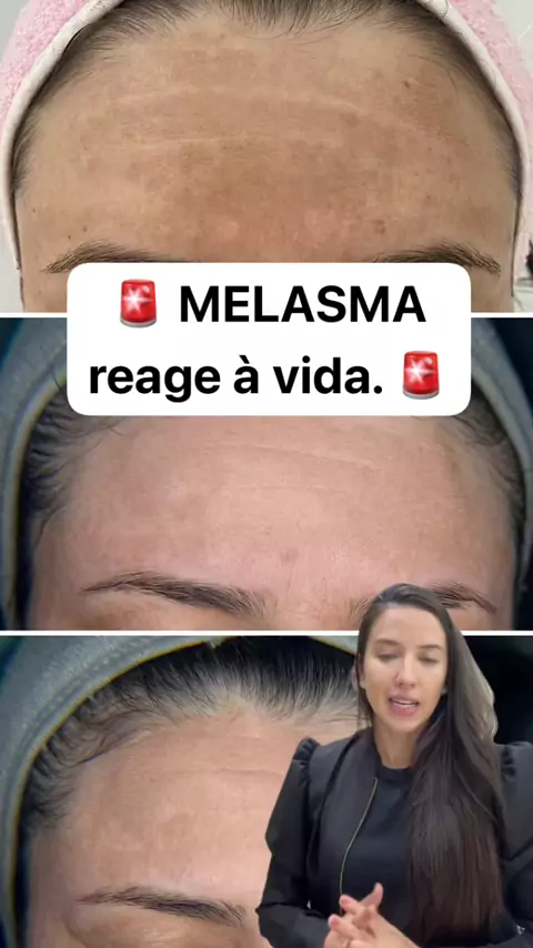O melasma não é fixo. Ele muda ao longo do tempo. Na primeira imagem (2022), essa cliente tinha um melasma escuro, sem acompanhamento e sem uma estratégia de cuidados. Na segunda imagem, o resultado após a realização de um plano de tratamento bem conduzido: melasma claro e quase imperceptível. Na terceira imagem, o momento atual: uma leve pigmentação. E isso é importante dizer: isso não significa que o tratamento falhou. A vida acontece. Mudanças de rotina, estresse, sono, alimentação e saúde