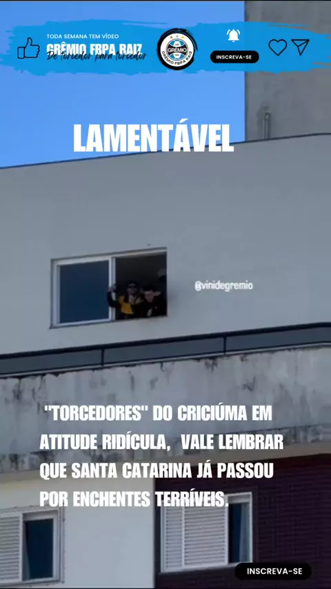 "Torcedores" do Criciúma em atitude ridícula e lamentável. Nós Gaúchos que movimentamos a economia de Santa Catarina, nossa tradição no estado de Santa Catarina é mais forte que a própria tradição deles. Querem tirar sarro por termos passado por uma enchente terrível, sendo que SC já passou por isso também, e nunca vi os gaúchos zoando os catarinense. #gremio #brasileirão