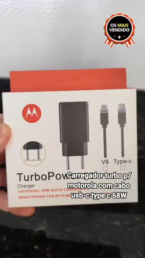 Carregador turbo p/motorola com cabo usb-c type c 68W