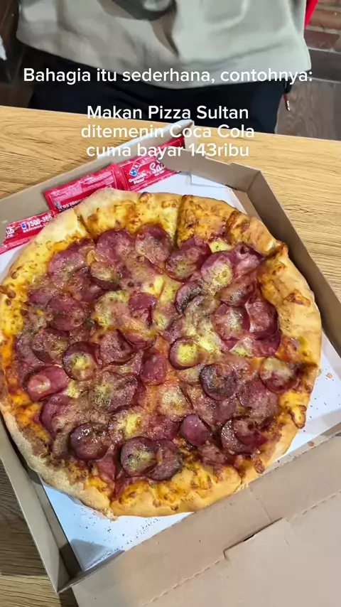 kapan lagi dapet pizza sultan dominos free coca cola cuma bayar 143 kalo bukan dari promo #nexentertainment#nexent#sultanpizza#dominospizza#pestaakhirtahun