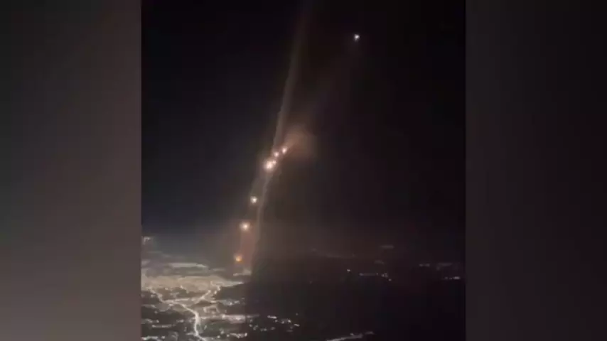 Um passageiro em um voo para o Dubai filmou o lançamento de alguns mísseis balísticos iranianos contra Israe #Israel #viraliza #maisviews #guerra #maisviews
