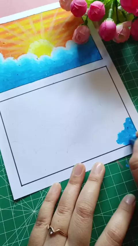 mewarnai gradasi langit sore pakai oil pastel##belajargambar#tutorialmenggambar#caramenggambar#lesmewarnai