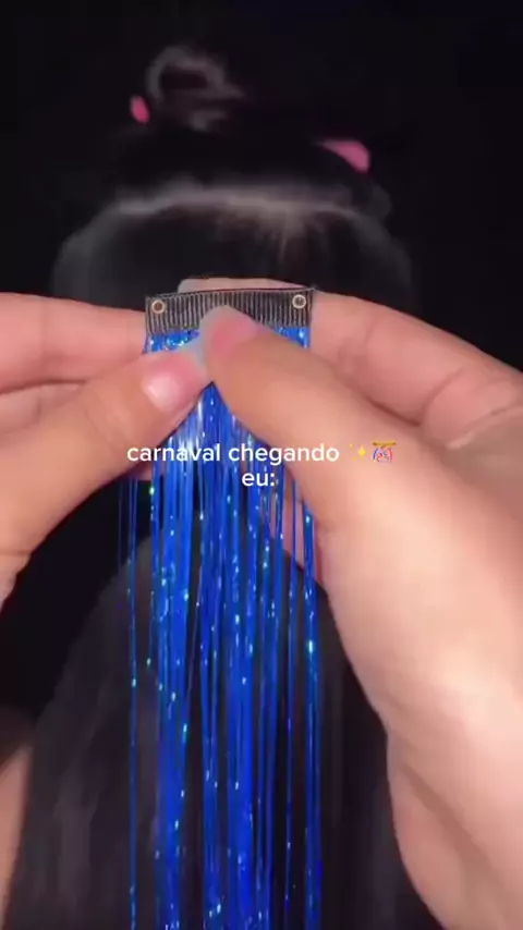 Carnaval chegando com muito brilho 💙✨ Cabelo com glitter, leve, estiloso e fácil de usar! link nos comentários 🛍️ #Carnaval #CabeloColorido #shopee #LookCarnaval #Brilho