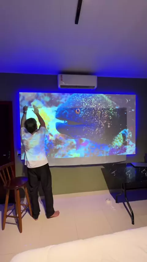 Fazendo 120” polegadas com projetor, só digitar o id na shopee: ALW-FGU-UPX tela de projeção de brinde 😁#projetor #cineencasa #bettdow