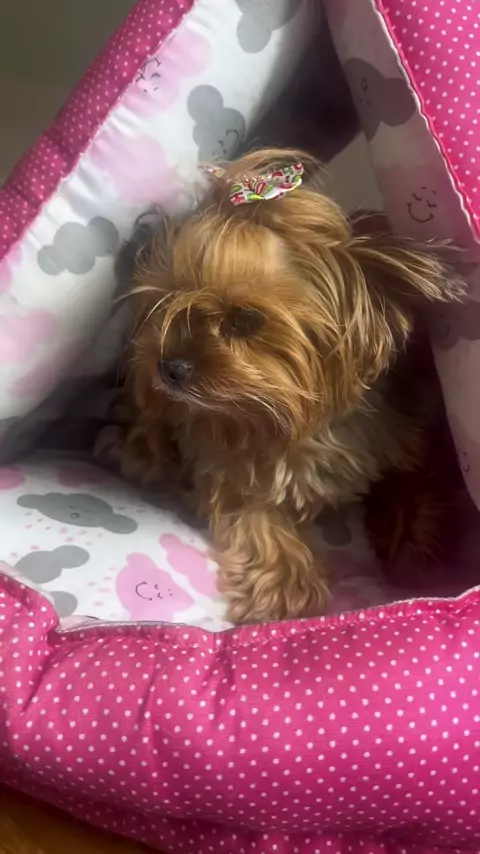 Deixa só ela aliviar o stress, rapidinho… • • • #cachorros #yorkshire #comedia #humor