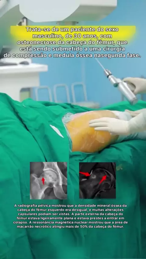 Um homem de 30 anos está no segundo estágio da osteonecrose da cabeça do fêmur e está passando por uma cirurgia minimamente invasiva para suprimir enxertos ósseos. # Necrose da cabeça do fêmur # Mantenha o quadril # Saúde