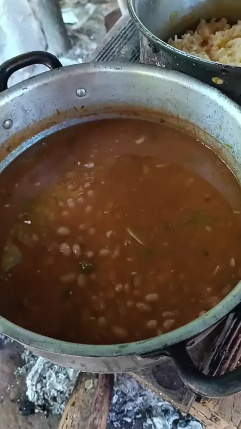 almoço feito no fogo a lenha, uma delícia 😋😋 #almocinho #carnedepanela #feijao #arroz #provadefogo