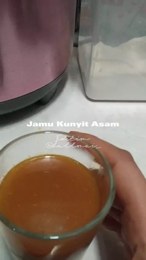 Kunyit Asam. Bahan : * 200 gram kunyit * 250 gram gula merah * 100 gram asam jawa * 1.500 ml air * 1/2 sendok teh garam Cara membuat: 1. Bakar kunyit kemudian parut/ blender halus. 2. Rebus kunyit dan semua semua bahan lainnya sampai mendidih. Saring dan dinginkan. Simpan di botol kaca jika ingin disimpan di kulkas. 3. Kunyit asam bisa dinikmati panas atau dingin. #MarikitaCoba #jamu #kunyitasam #langsing