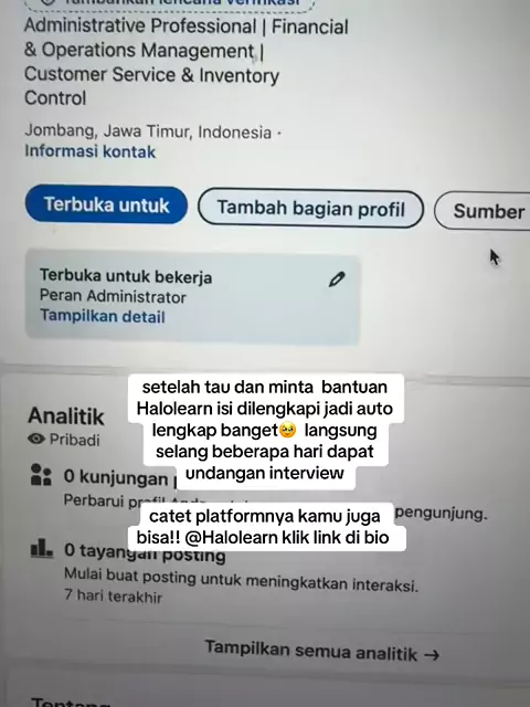 Ternyata linkedin sepowerful itu langsung buat di halolearn tunggu beres #freshgraduate #simulasiinterview #digitalmarketing #linkedintips #konsultasikarir