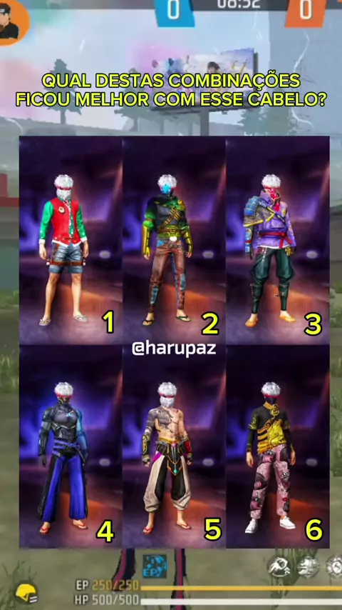 Qual destas combinações de skin do FF ficou com esse cabelo/cabeça? FREE FIRE #serirjáera #sejagamer #2025internationalshortvideocompetition #FreeFire #garenafreefire
