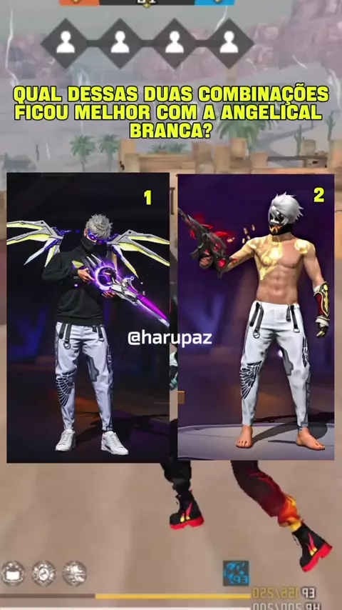 Qual destas duas combinações ficou melhor com a ANGELICAL BRANCA FF ? #KwaiBrasil #FreeFire #kwaigames #maisviews #garenafreefire