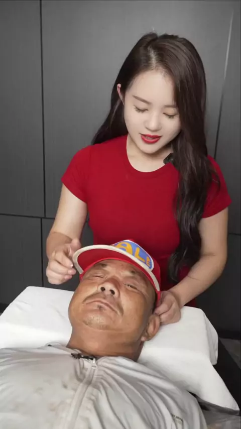 O rosto do irmão estava cheio de brincadeira, e a senhora finalmente se divertiu com a oferta de abrir a boca para beber.