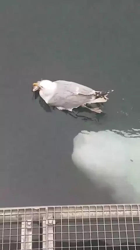 Baleia Beluga brincando com Gaivota.😍😍😍🥰🥰🥰🥰🥰❤️❤️❤️❤️