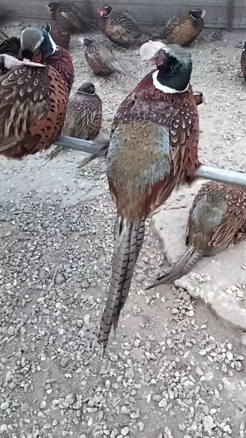 Faisão, pato selvagem, galinha pérola, correu. Ao vivo às 12h30 todos os dias.