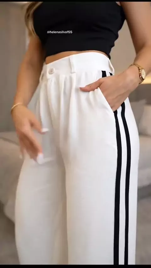 Calça pantalona feminina com listas nas laterais #estilosa #calça #pantalona #modafeminina